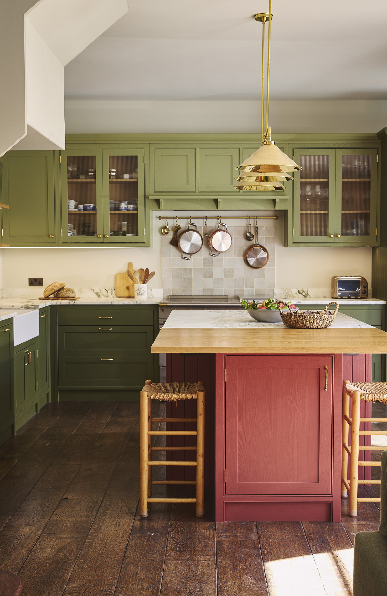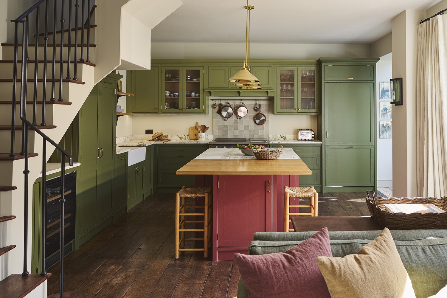 The kitchen uses two bespoke greens that look close but aren’t identical. What drew you to that subtle, layered palette?