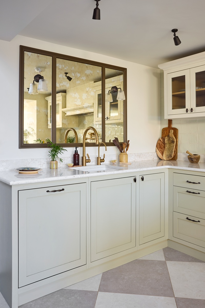 Additional softness came through mercury-style glass at the splashback – beautiful, forgiving and easy to maintain.