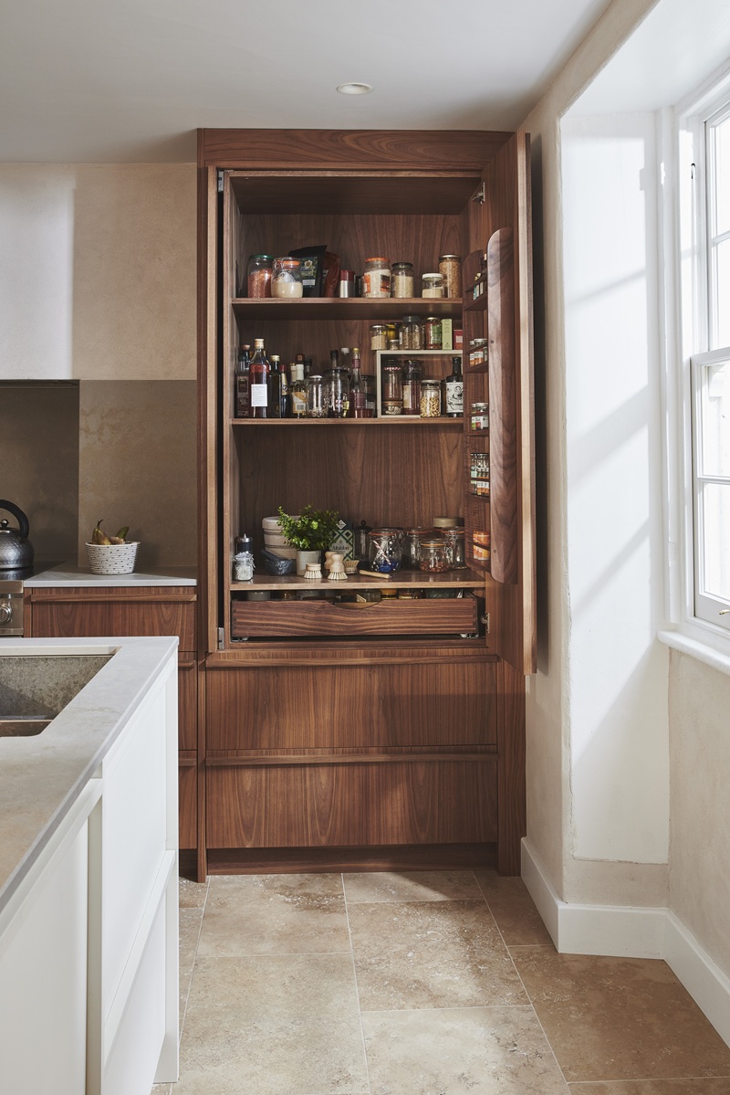 A larder cupboard is the calm centre of a busy kitchen – easy on the eye but exceedingly useful too. It offers