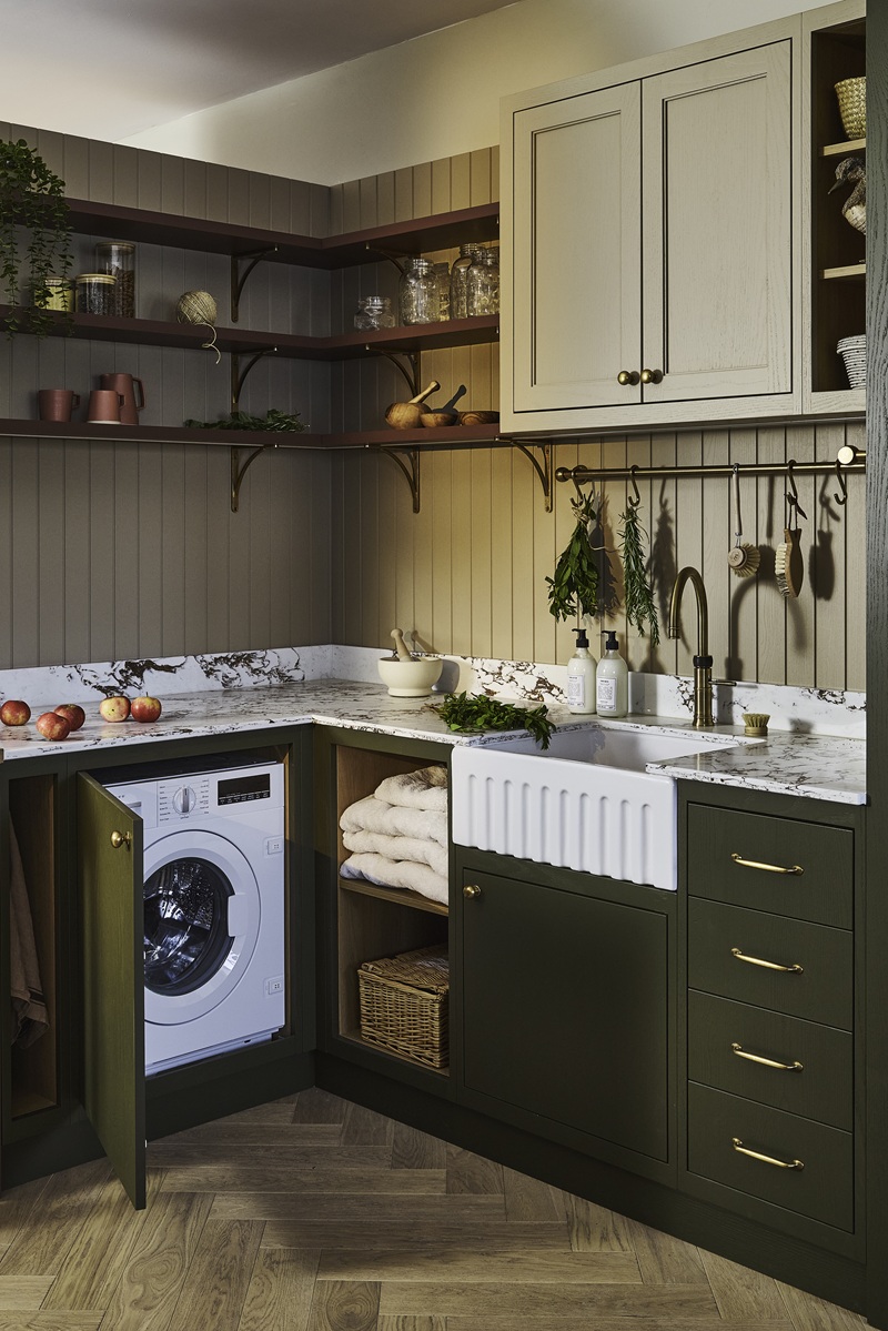 Likewise, separating out the more practical elements of kitchen life – laundry, cleaning supplies, bulk storage – into a utility area (or even a well-designed utility cupboard) can transform how the space functions.