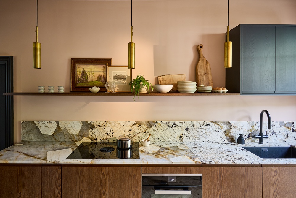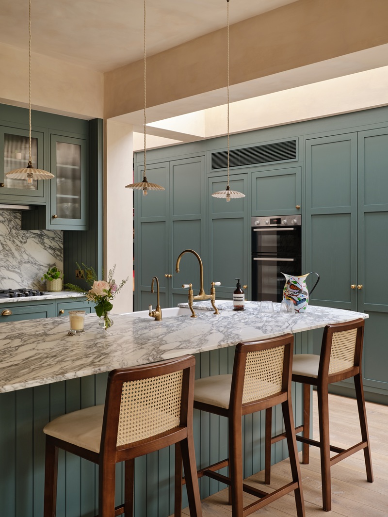That doesn’t mean every kitchen needs to be bold. Some of the most beautiful schemes use subtle, layered tones that create calm and depth.