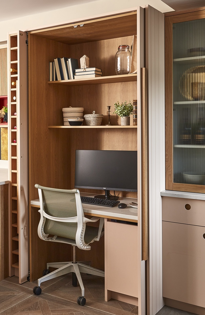 Working from the kitchen table loses its charm quickly. That forgotten space beneath the stairs could be your salvation. A desk, shelving, storage and even pocket doors to close it all away: a complete home office fitted into what was once a dumping ground. An alcove workstation disappears neatly at day’s end, doubling the space as a TV centre or crafting zone. And the same trick works elsewhere — a bedroom corner, a hallway recess, even a dining room.