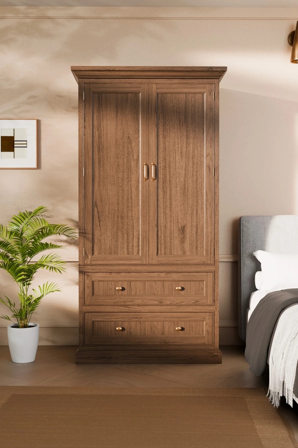 Anywhere you like, really. We’ve grouped the range into kitchen, bedroom, and living, but don’t feel you need to follow the signs. A sideboard can look great in the bathroom. A larder can be stunning in the hallway. A wardrobe can be… well, a wardrobe, but an extremely good-looking one.
