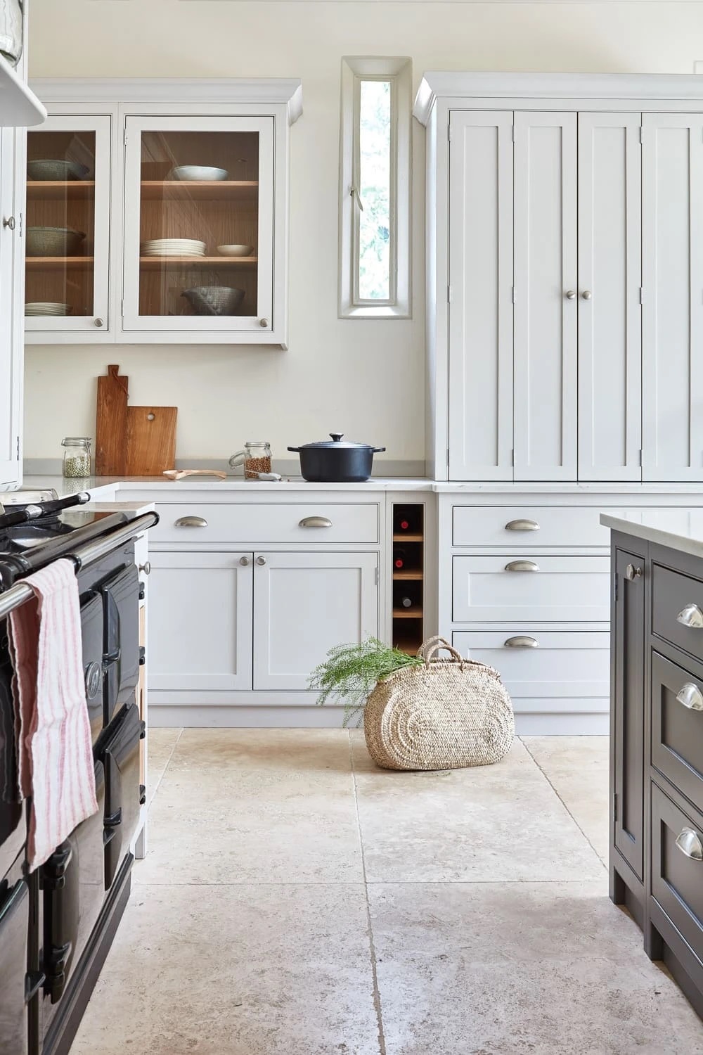 A slightly brighter white on worktops or splashbacks can sharpen the overall palette without making it feel stark. A deeper tone on an island or larder can anchor the room while still sitting comfortably within the scheme.